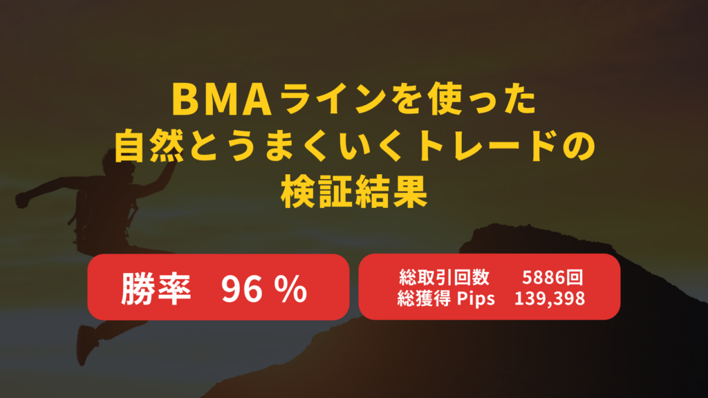 価格とBMAラインの普遍的な関係から、トレンドの始まりでエントリーし、トレンドの終わりで決済をすることで、自然とうまくいくトレードとなることが、過去データでの検証により裏付けされているのです。