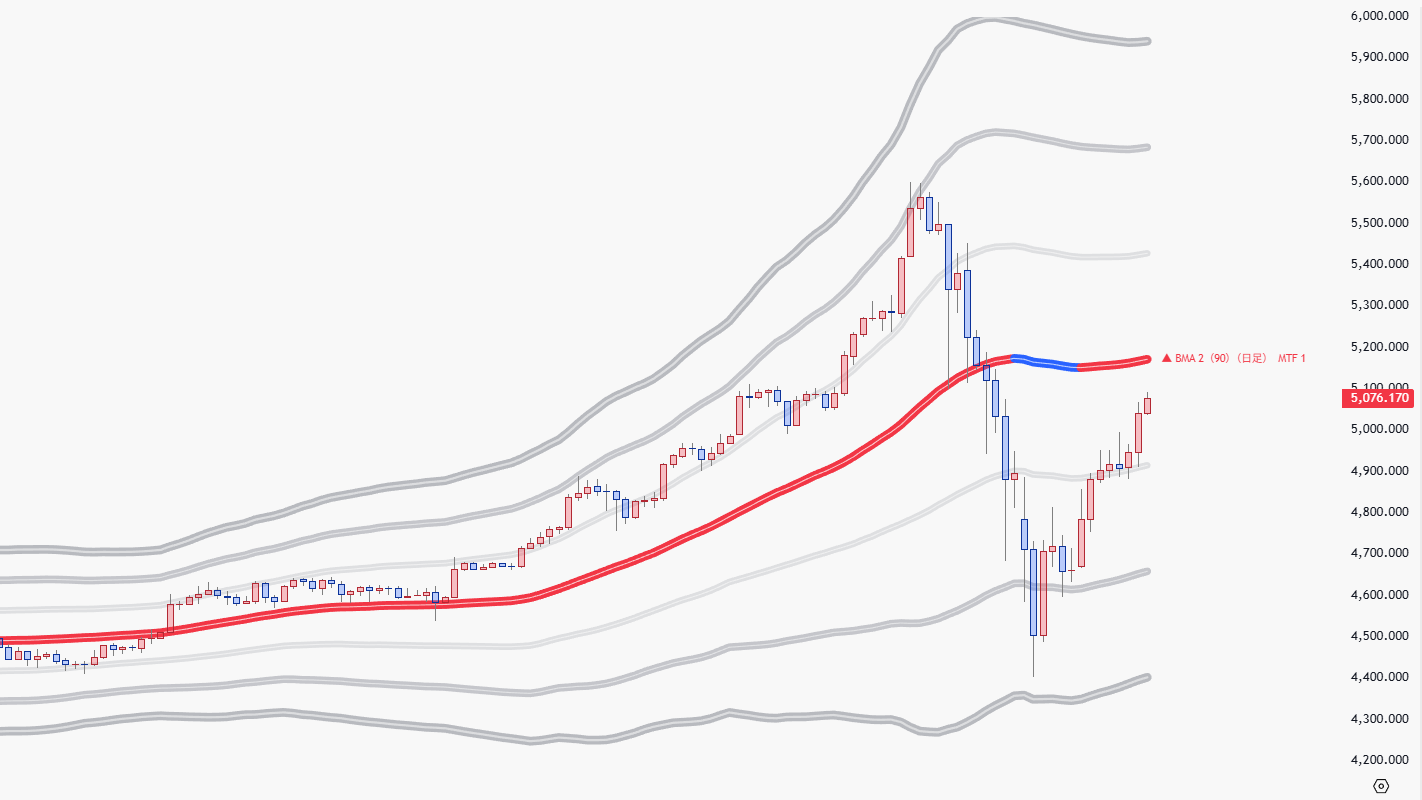 ボリンジャーバンドの中心線に、BMAラインを使用したものを、