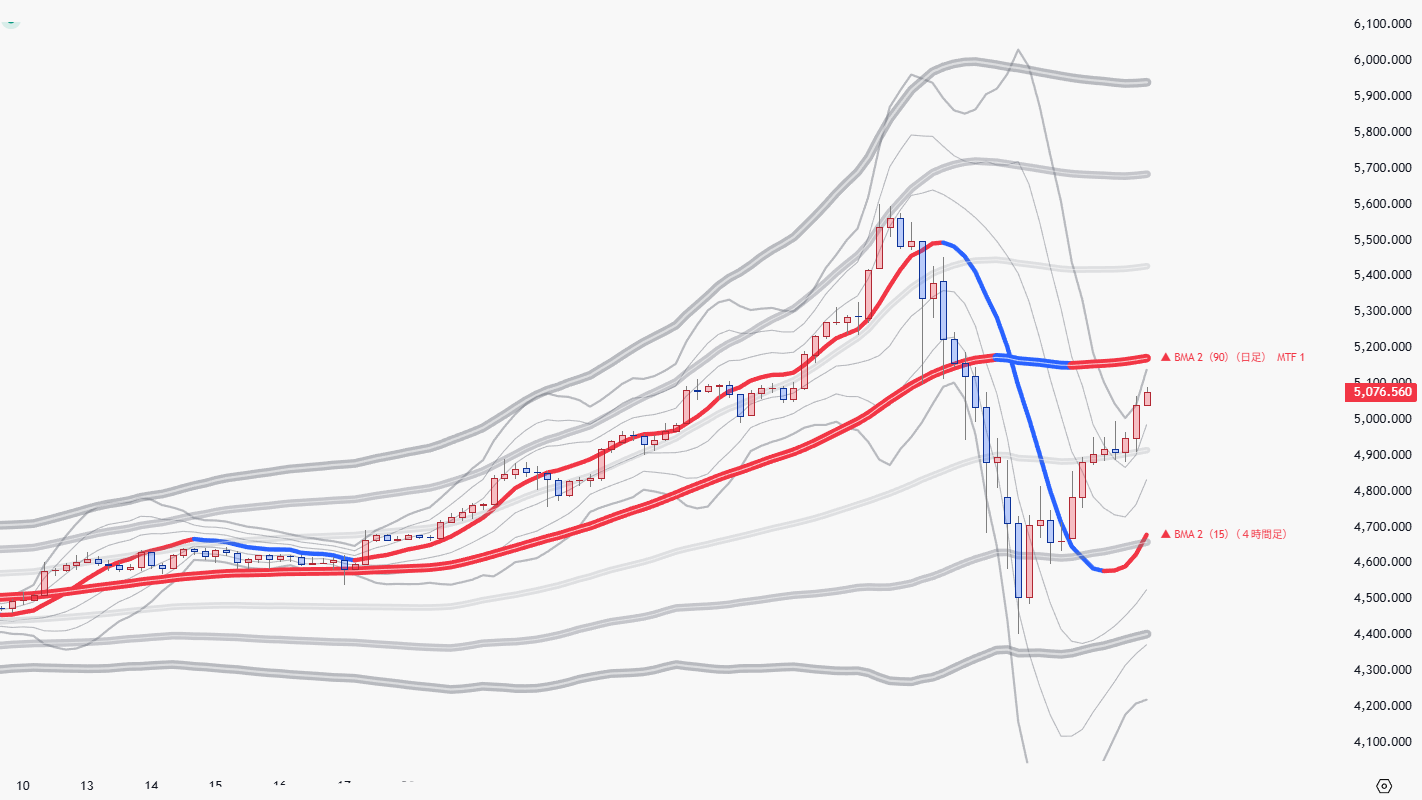 BMAラインを中心線に使ったボリンジャーバンド、